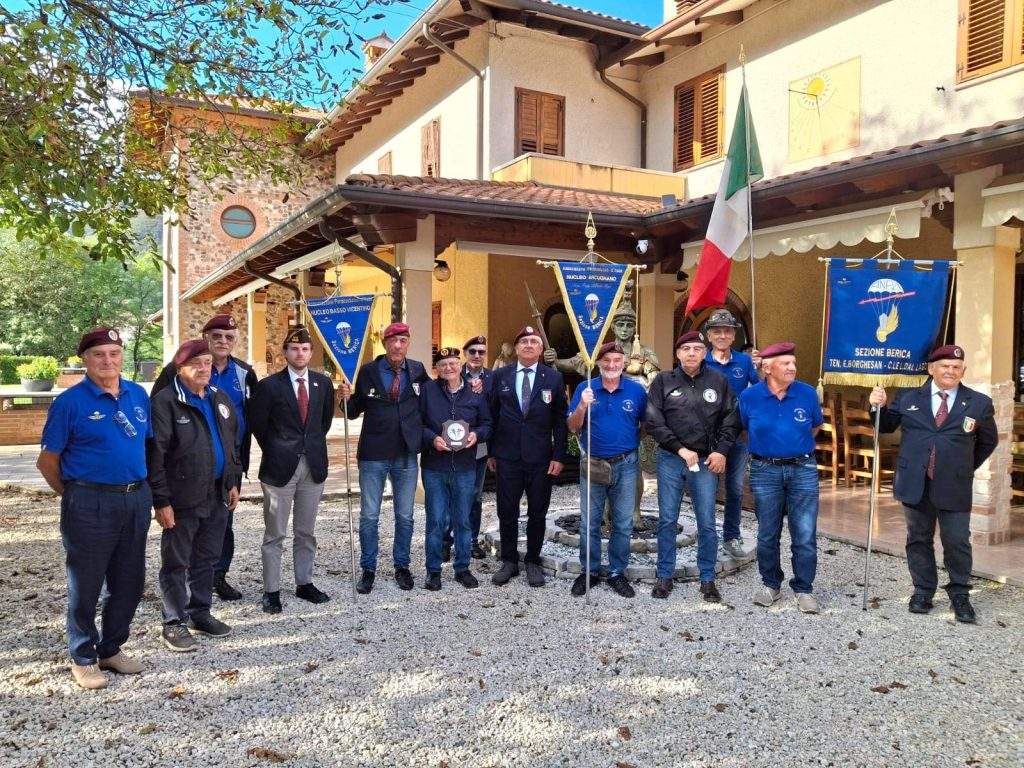 Il Presidente Pasqualin ha quindi espresso la riconoscenza della Sezione Berica a quanti hanno contribuito alla riuscita della giornata: la Banda di Cogollo del Cengio, diretta dal maestro Daniele Calgaro, capace di emozionare anche con la canzone dei paracadutisti preparata in pochi giorni; il socio par. Antonio Bassan e tutti i paracadutisti della Berica e dei Nuclei Arcugnano e Basso Vicentino, che si sono impegnati con dedizione; i cittadini di Chiuppano; le Sezioni amiche – Alta Padovana, Valdalpone, Galliera Veneta, Basso Vicentino – e le Associazioni Combattentistiche e d’Arma, tra cui Alpini, Fanti, UNUCI e Veterani Americani.