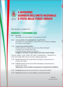 Successivamente in corteo sono state deposte le corone di alloro presso i monumenti ai Caduti e vi sono state le allocuzioni del Presidente Caroti che ha ricordato i paracadutisti cortonesi e del Segretario Generale dell’ANPd’I Gen. B.(ris) Enrico Pollini che ha anche ricordato la concomitanza della data odierna con la “tragedia della Meloria” del 9 novembre 1971 nella quale persero la vita 46 paracadutisti della Folgore, i 5 membri dell’equipaggio del C130 inglese e successivamente il Serg. Magg. sab. Giannino Caria durante le operazioni di recupero delle salme in mare.