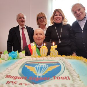 Oggi è stato giustamente festeggiato, oltre che dalla sua Sezione, anche dalle istituzioni civili e militari, queste ultime con rappresentanze del 184º Reparto Comando e Supporti Tattici “Nembo” e del 183º Reggimento paracadutisti “Nembo”.