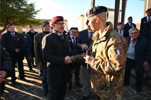La calorosa accoglienza del Comandante del Reggimento, Colonnello Massimo Cocco (tra l’altro proveniente dalla Brigata Paracadutisti Folgore, e segnatamente dal 185º Reggimento Artiglieria Paracadutisti “Folgore”), ha contribuito a creare un clima di autentica fratellanza. La caserma è stata percepita come luogo vivo, definita “casa”, espressione concreta di disciplina, storia e spirito di servizio, elementi che accomunano il mondo militare e quello associativo. La giornata, che ha segnato la presenza anche di due componenti della GEN (il S.G. Gen. Enrico Pollini, e il S.T.N. Alberto Benatti) è stata poi caratterizzata dalla partecipazione estesa alla base associativa, fortemente voluta dal Consigliere Nazionale Dariol.