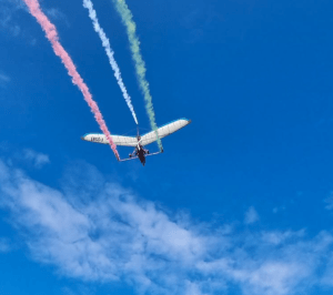La giornata si è aperta con la sfilata per le vie del paese, preceduta dalla Banda, seguita dalla Santa Messa e dagli onori ai Caduti presso il monumento locale, dove è stato deposto un omaggio floreale in memoria di quanti hanno sacrificato la propria vita per la Patria. Momento di intensa suggestione è stato il passaggio aereo acrobatico, impreziosito dal lancio delle bandiere tricolori che hanno colorato il cielo sopra Trevignano, strappando un lungo applauso ai presenti.